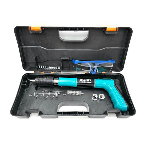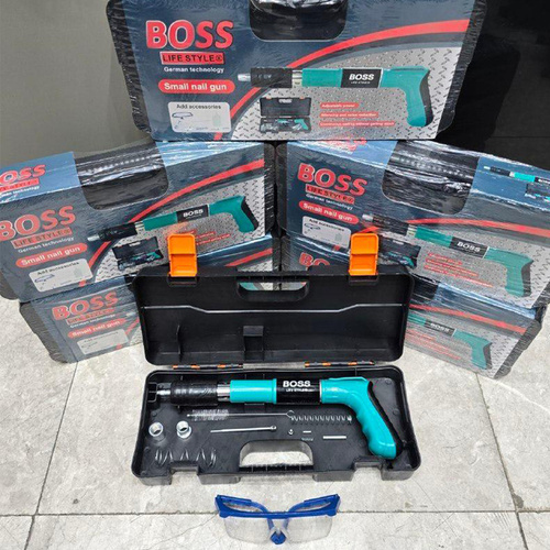 xامکان استفاده در بتن، پلاستیک، ورق های نازک فلزی، چوب و ... را دارد xقابلیت استفاده میخ تا 5 سانتیمتر را دارد xکارکرد ساده و قوی دارد xبدون نیاز به چاشنی انفجاری جداگانه می باشد xبسیار سبک، کم حجم وقابل حمل می باشد xمحصولی جدید و با تکنولوژی به روز جهت جایگزینی برای میخکوب های والتی، کامرکس و ... می باشد xبدون نیاز به چاشنی انفجاری می باشد xدارای کیف حمل، عینک، فرچه، فنر یدک می باشد تفنک میخکوب ابزاری است مشابه تفنگ بادی است. تفنگ میخکوب بتن برای اتصال پلیت ها و صفحات مختلف به بتن می باشد. البته مصارف دیگری از جمله اتصال انواع توری های مشبک و غیره به صفحه های بتنی و مصالح ساختمانی را نیز دارد. این تفنگ ها به وسیله چاشنی میخ موجود در خان تفنگ را با شدت به سمت هدف شلیک کرده و واشری که بر روی میخ قرار دارد صفحه را بر روی بتن نگه می دارد. با قرار دادن چاشنی مخصوص در داخل دستگاه و قرار دادن میخ در محل تعیینشده، میتوانید از این ابزار استفاده کنید. چاشنیهایی که برای این محصول در نظر گرفتهاند در دو نوع و برای کوبیدن میخ در فلز یا بتن هستند. نوع میخی که برای این دستگاه مورد استفاده قرار میگیرد، از گونههای واشردار است. از این دستگاه در شغلهای مختلف که با چوب و فلز سروکار دارند، استفاده میکنند.